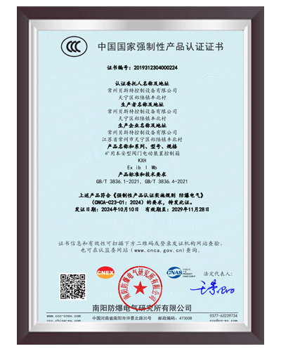 本控制箱適用于煤礦井下含有甲烷和爆炸性氣體環境中,在交流50Hz、電壓為1140、660,電流為額定值的供電線路中,對3、6、9、12、15臺礦用隔爆型閥門電動裝置進行開向、關向、停止控制,并對電動機進行過載、短路等保護,同時負荷側電路絕緣狀況實現漏電閉鎖保護,中文漢字顯示各電裝的狀態,控制箱具備遠程通訊接口。